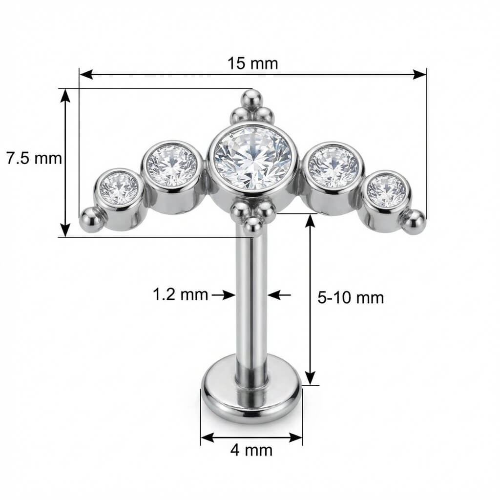 Pronta a brillare? Questo splendido arco con cinque cristalli incastonati segue perfettamente le linee del tuo orecchio. Il design ispirato a una tiara, rifinito con delicate sfere metalliche, aggiunge un tocco glam unico al tuo helix o conch. Realizzato in Titanio di alta qualità, è sicuro sulla pelle, ipoallergenico e super resistente. Il dettaglio che renderà il tuo ear stack indimenticabile!