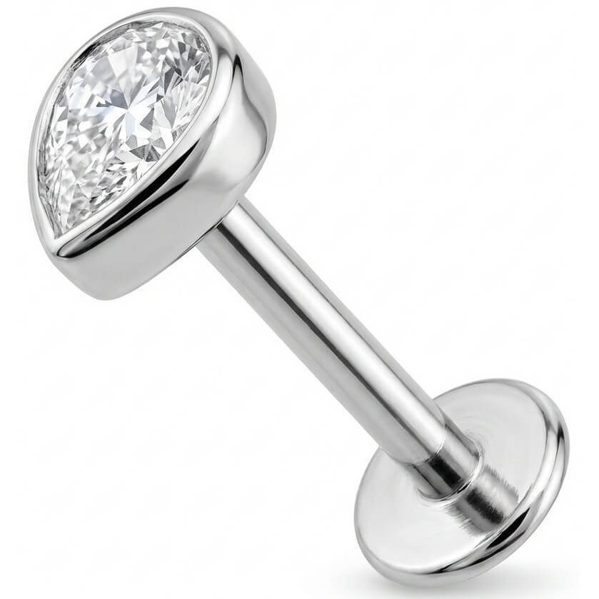 Illumina il tuo stile con questo splendido cristallo a goccia. La montatura a lunetta (bezel) lo rende liscio al tatto e perfetto per qualsiasi composizione all'orecchio, dal trago all'helix, senza impigliarsi. Realizzato in Titanio di alta qualità, è sicuro sulla pelle, leggero e super resistente. Un tocco di luce irrinunciabile per rendere unico il tuo look!