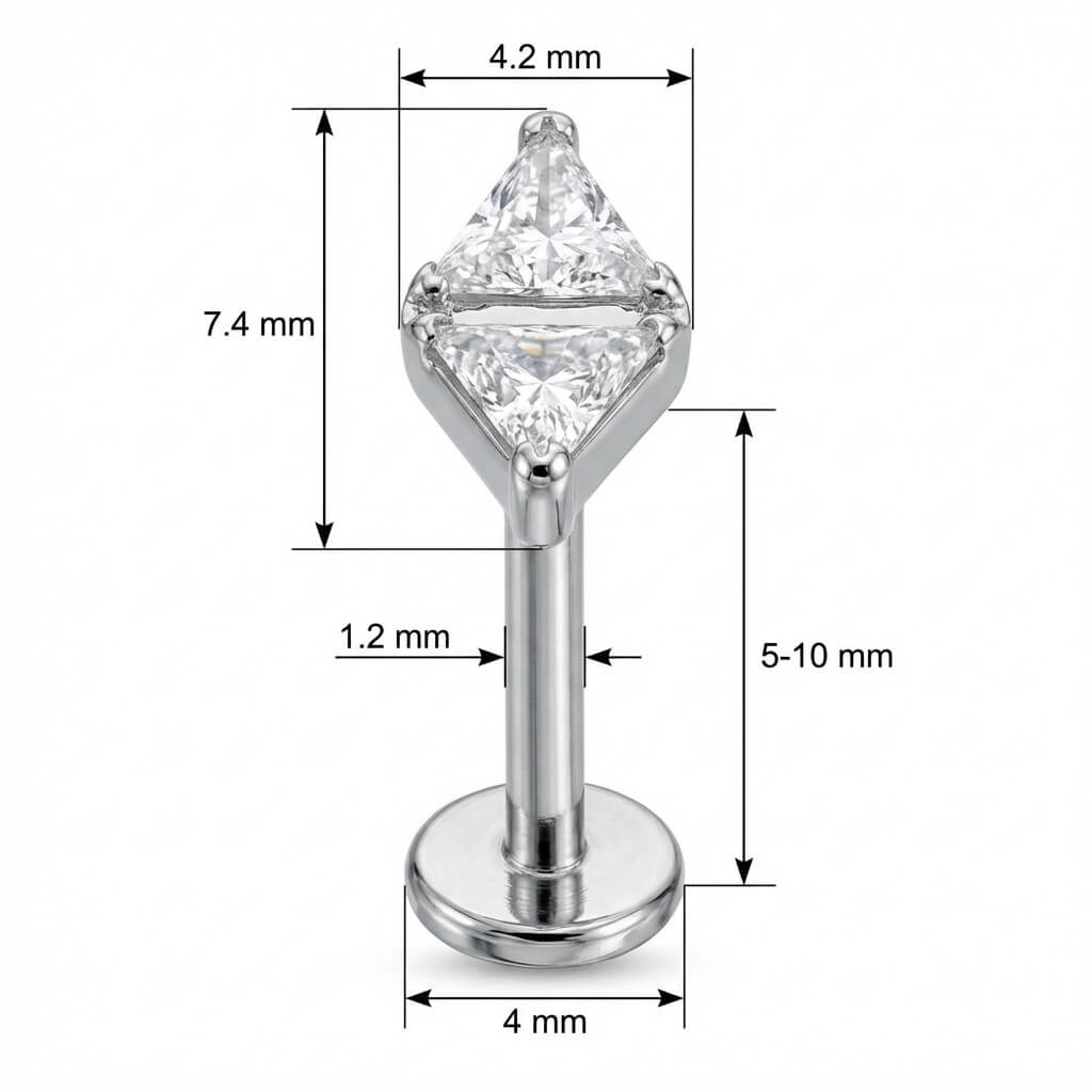 Aggiungi un tocco di luce geometrica al tuo look! Due cristalli triangolari si uniscono per creare un effetto fiocco super chic e moderno. È il dettaglio perfetto per il tuo ear stack, ideale per illuminare l'helix o il lobo. Realizzato in Titanio di alta qualità, è ipoallergenico e resistente, perfetto per essere indossato sempre. Preparati a brillare!