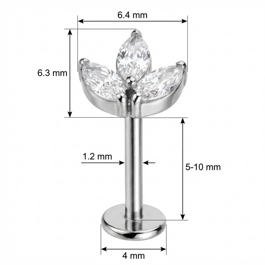 Illumina il tuo look con questo design ispirato alla natura. I tre cristalli chiari taglio marquise creano un delicato motivo floreale, perfetto per helix, conch o lobo. Realizzato in Titanio di alta qualità, è ipoallergenico e super resistente. Il dettaglio scintillante che non può mancare nel tuo ear stack.