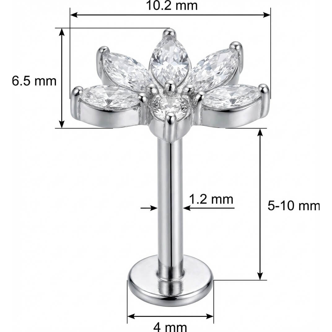 Illumina il tuo stile con questo spettacolare design a ventaglio. I cristalli scintillanti taglio marquise creano una delicata forma di loto che non passa inosservata. Perfetto per helix, conch o lobo, aggiunge quel tocco glam che stavi cercando. Realizzato in Titanio di alta qualità, è sicuro sulla pelle, resistente e perfetto da indossare ogni giorno. Il dettaglio che mancava al tuo ear party!