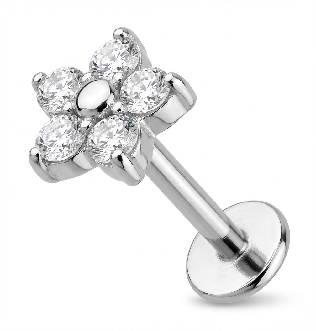 Fai sbocciare il tuo look! Questo splendido design floreale brilla incredibilmente grazie ai suoi cristalli luminosi che circondano il centro lucido. Realizzato in Titanio di alta qualità, è sicuro sulla pelle e super resistente. Perfetto per arricchire il tuo ear curation, dal trago all'helix fino al lobo. Un tocco di luce indispensabile per il tuo stile quotidiano.