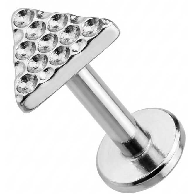 Aggiungi un tocco di carattere al tuo ear stack con questo triangolo dalla superficie lavorata. L'effetto martellato crea giochi di luce incredibili, perfetti per un look moderno e ricercato. Realizzato in Titanio di alta qualità, è sicuro sulla pelle e resistente all'uso quotidiano. Ideale per valorizzare il tuo helix o tragus con stile.