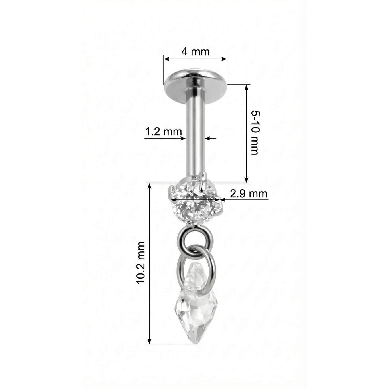 Illumina il tuo look con questo gioiello imperdibile. Un cristallo rotondo luminoso sostiene un delicato pendente a forma di rombo che cattura la luce ad ogni movimento. Realizzato in Titanio di alta qualità, unisce stile e sicurezza per la tua pelle, garantendo comfort assoluto. Il dettaglio perfetto per rendere unico e scintillante il tuo ear curation.