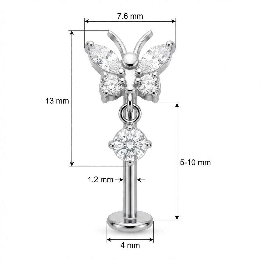 Un tocco di magia per il tuo look! Questa farfalla scintillante, arricchita da un cristallo pendente mobile, brilla ad ogni tuo passo. Realizzata in Titanio di alta qualità, è sicura sulla pelle e perfetta per essere indossata tutto il giorno senza pensieri. Aggiungi subito un po' di luce e stile al tuo ear stack.
